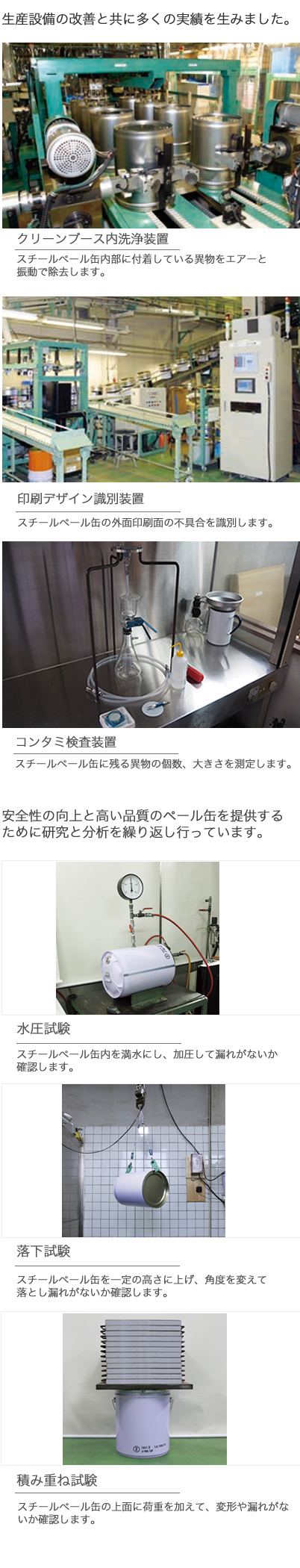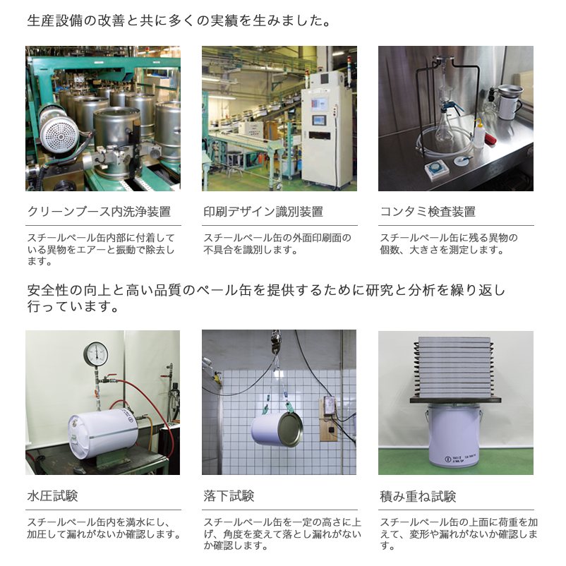 スチールペール缶一筋70年、長年に亘って築いてきた豊かな経験と実績を活かします。